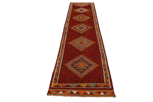 3x13 Rug Runner Bohemian ,Vintage Geometric Wool Runner rug, Oriental Runner RUG, Turkish Boho Runner rug, Oushak Runner, 7205