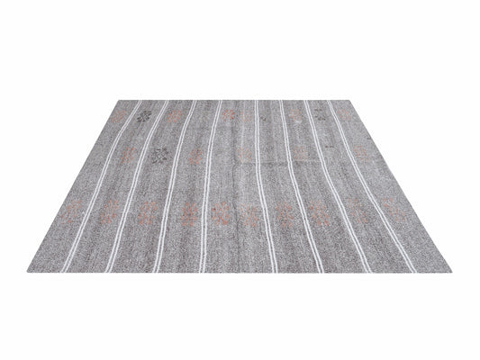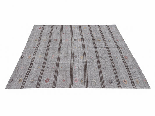 Turkish Kilim Rug, Handmade Unique Kilim Rug, Area Striped Kilim Rug, Vintage Kilim Rug, Gray Rug, Rug Kilim 7x9, Scandinavian Rug, 12193