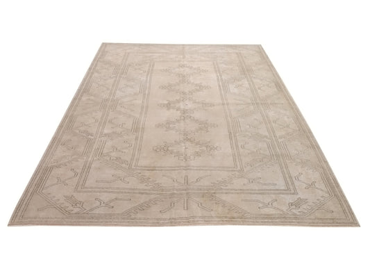 Turkish Oushak Vintage Beige Rug 7x10 Area Neutral Bedroom Carpet Rug Farmhouse decor Rug for Housewrming Made in Anatolia Turkey 10017