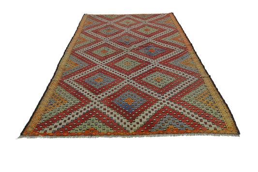 Colorful Vintage Turkish Kilim Rug 6x9 , Handmade Bohemian Area Kilim Rug, Entryway rug, Flat weave Rug, Eclectic decor, Wool rug, 9708