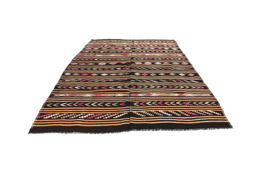 Handmade Kilim Rug, Vintage Antique Kilim Rug, Turkish Black Kilim Rug, Kilim Rug 6x9, Goat Hair Rug, Living Room Rug, Area Kilim Rug, 3149