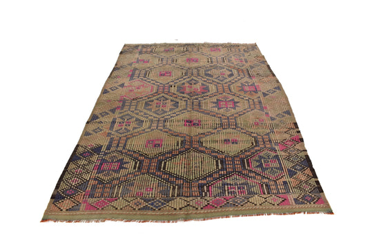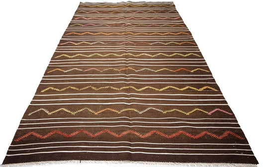 7x10 Turkish Kilim Rug, Vintage Kilim Rug, Kilim Rug, Handmade Kilim Rug, Unique Rug, One of a Kind, Flat Weave Rug, Brown Rug, 7815