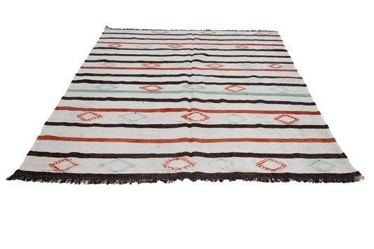 Handmade Kilim Rug, Turkish Vintage Kilim Rug, Area Unique Kilim Rug, Hemp Kilim Rug, Coastal Decor, White Striped Rug, Kilim Rug 6x8, 12178
