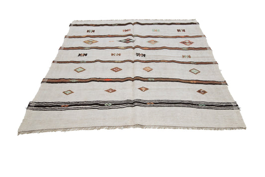Kilim Rug 6x8, Turkish Handmade Kilim Rug, Area Unique Kilim Rug, Vintage Kilim Rug, Coastal Decor, White Hemp Kilim Rug, Wool Rug, 11514