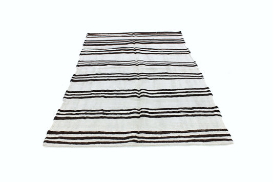 6x8 Black White Kilim Rug, Turkish Kilim Hemp, Vintage Kilim Striped, Turkish White Hemp Kilim Rug, Contemporary, Living Room, 5800