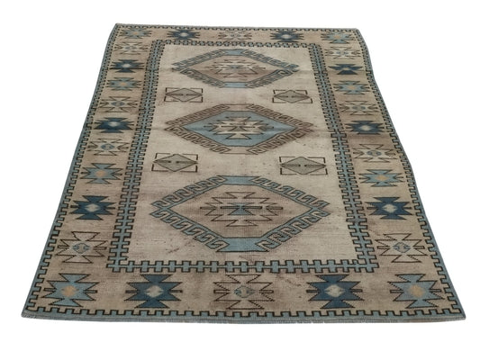Handmade Oushak Area Rug, Neutral Turkish rug, Vintage Carpet rug, 4x7 Rug, Beige rug, One of a kind rug, Boho decor, Office rug, 8952