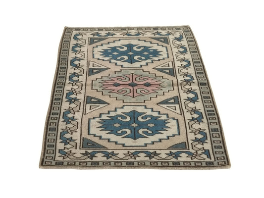 Muted Anatolia Oushak Rug, Small Vintage Carpet Rug, Handmade Wool Turkish rug 3x4, Bedroom rug, Turkish Carpet, Pastel Turkish Rug, 9044