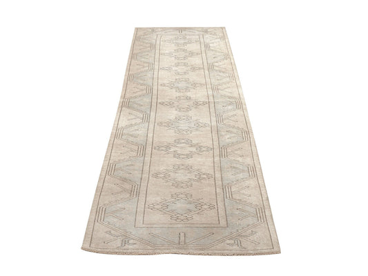 Vintage Handmade Runner Rug, Turkish Unique Runner Rug, Neutral Muted Rug, Hallway Runner, Kilim Runner, Runner Rug 3x10, Rug Runner, 12223