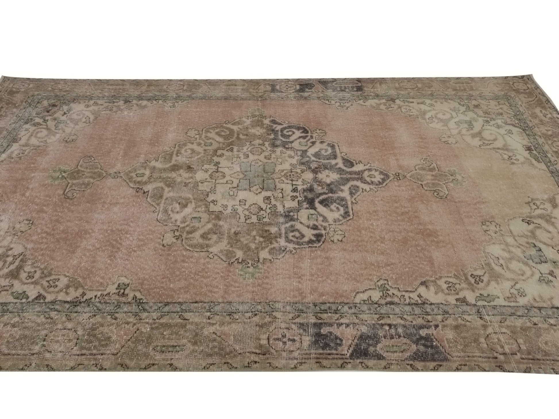 6x10 Oushak Rug Pastel, Neutral rug, Distressed rug, Turkish Vintage Oushak Rug, Handmade Area Coastal Carpet rug, 9012SİZE; 314X184CM - 6'1X10'3 FTBeautiful Vintage Turkish Oushak Carpet Rug is around 60 - 70 years old and in very good condition.This Carpet was hand-woven in the east part region of , Turkey.Care:Dry cleaning only
