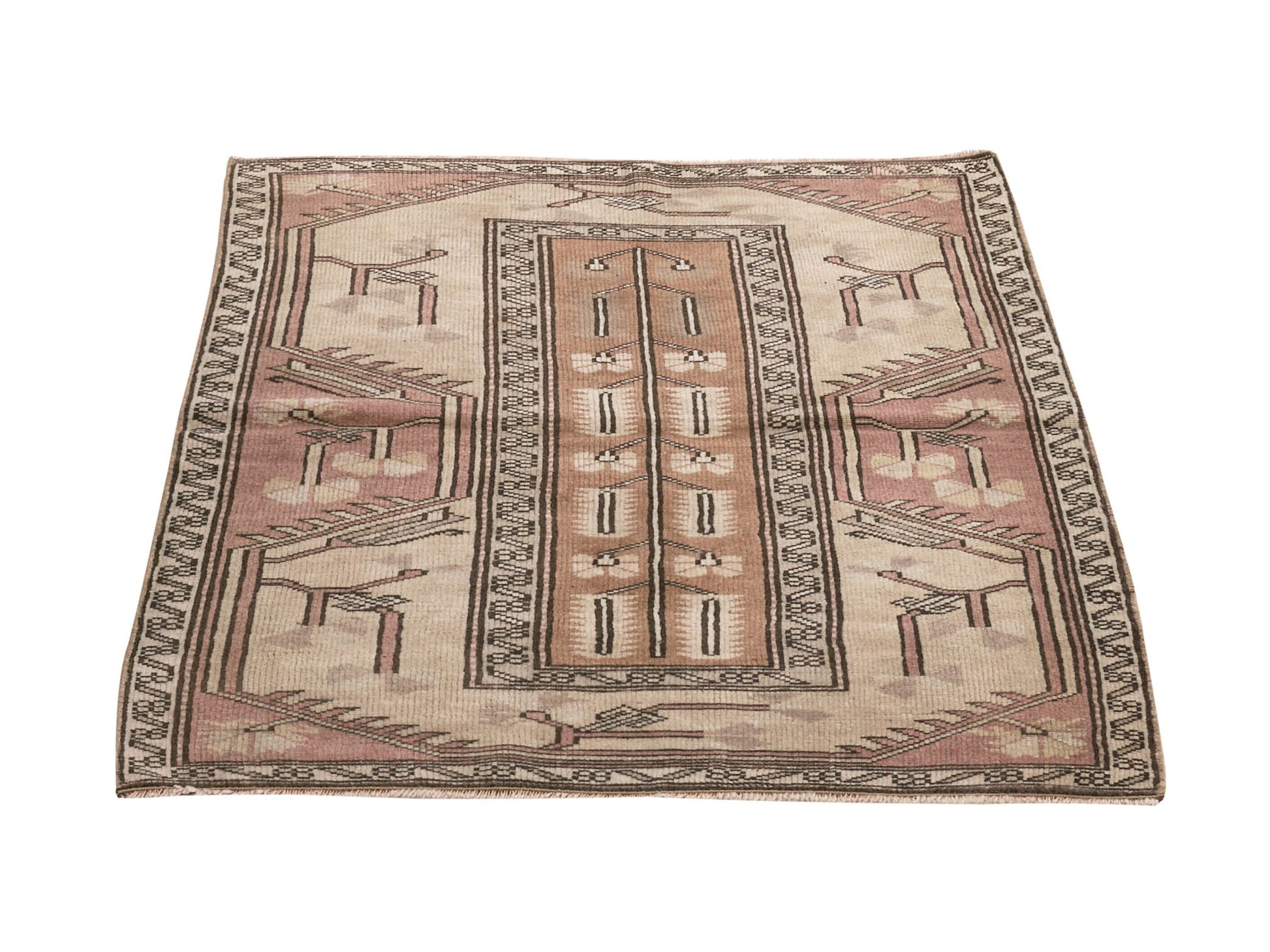 Entryway Vintage rug , Small Oushak rug, Door mat 3x4 rug, Turkish Anatolian rug, Handmade rug, Antique rug, Bath mat rug,Neutral rug , 8639SIZE : 118x88 Cm - 2'9x3'9 FtBeautiful vintage Turkish Carpet rug is around 60 - 70 years old and in very good condition.This Carpet was hand-woven in the east part region of , Turkey.Care:Dry cleaning only