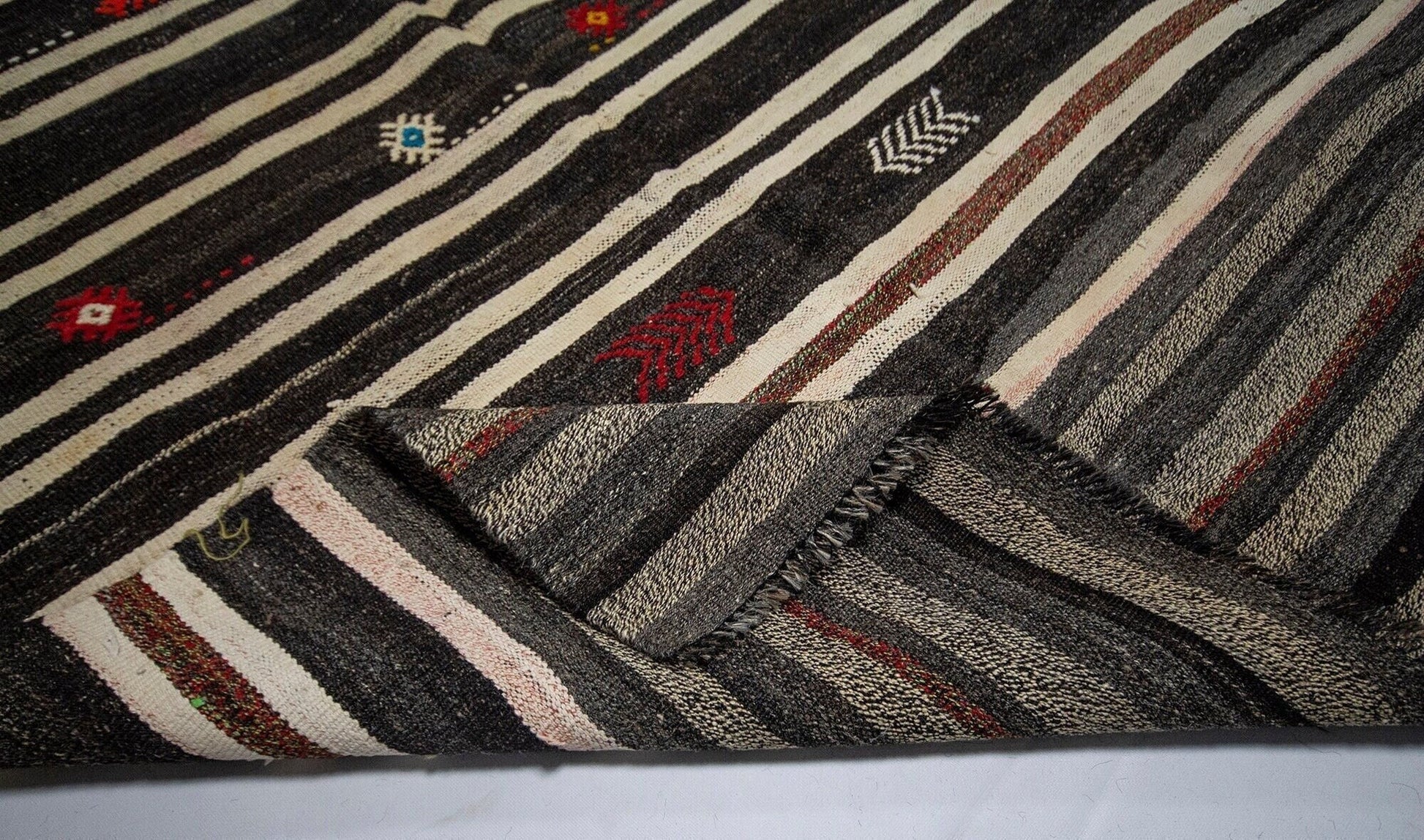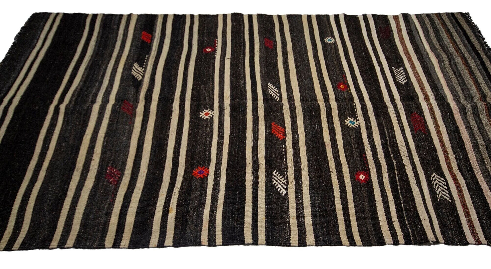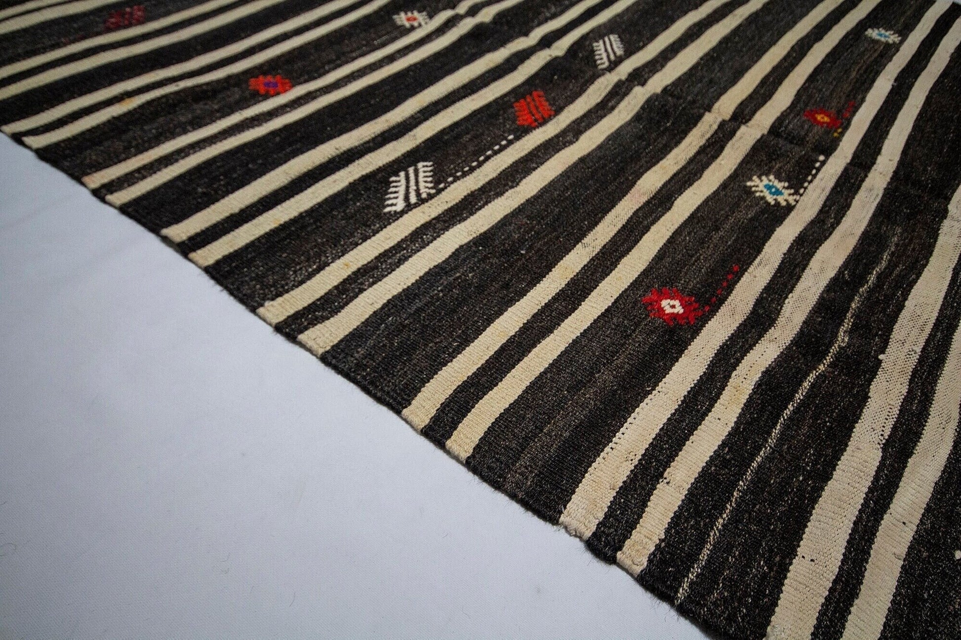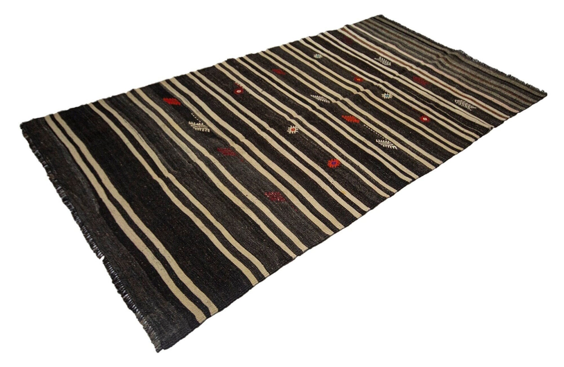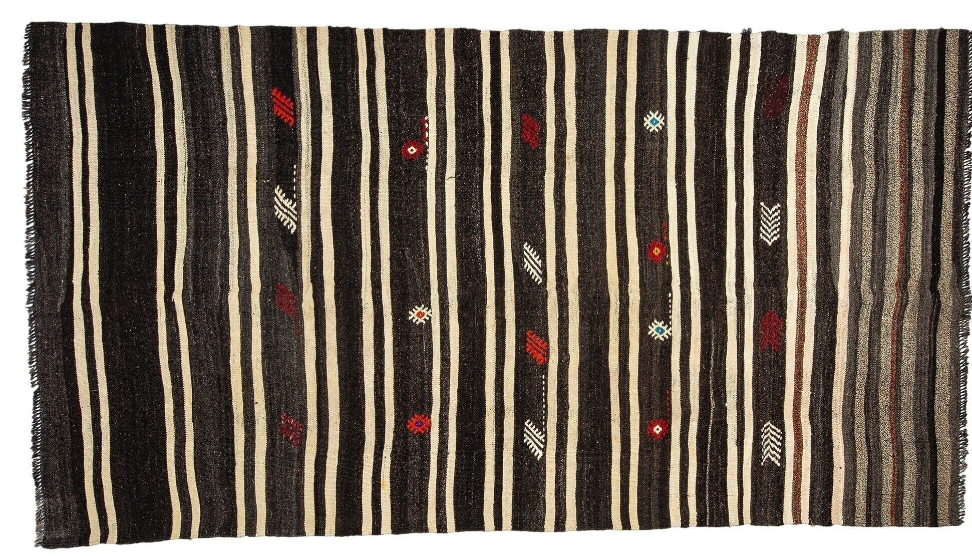Kilim Rug Striped,Turkish Kilim Unique,Modern Vintage Kilim,Living Room Rug,One of a kind Rug,Minimalist Rug,Kilim Rug 5x10,5998SİZE;320x170 FT, 5'6X10'2CMBeautiful vintage Turkish Vintage Goat Hair Kilim Rug is around 60 - 70 years old and in very good condition.This Kilim was hand-woven in the east part region of , Turkey.Care:Dry cleaning only