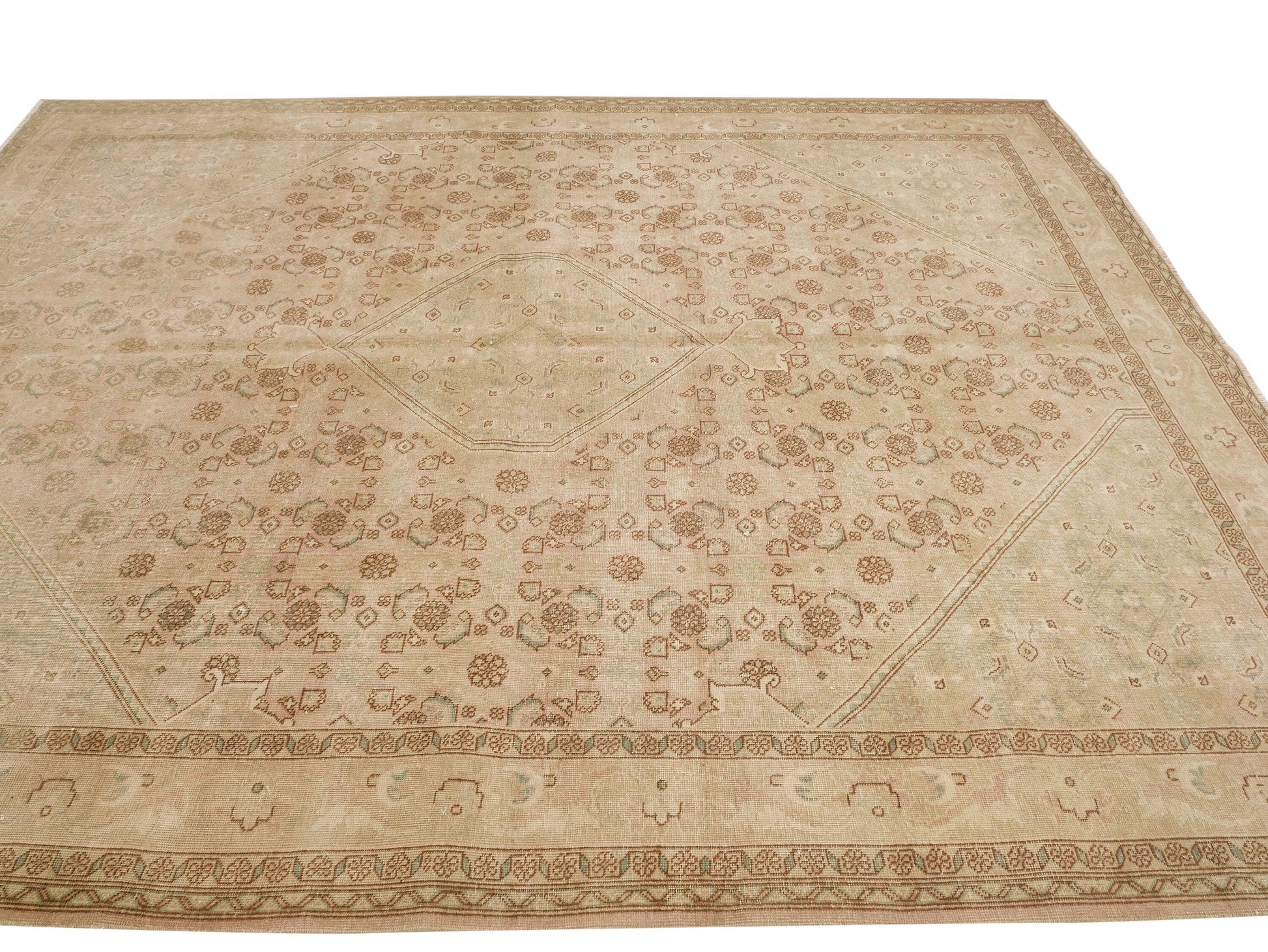 Muted Oushak Rug, Large Turkish rug, 9x11 Rug, Area Rug 9x11, Vintage Rug, Oversize rug, Large Carpet Rug 9x11, One of a kind rug, 9601SİZE ;342X260CM -8'5X11'2 FTBeautiful vintage Turkish Carpet rug is around 60 - 70 years old and in very good condition.This Carpet was hand-woven in the east part region of , Turkey.Care:Dry cleaning only