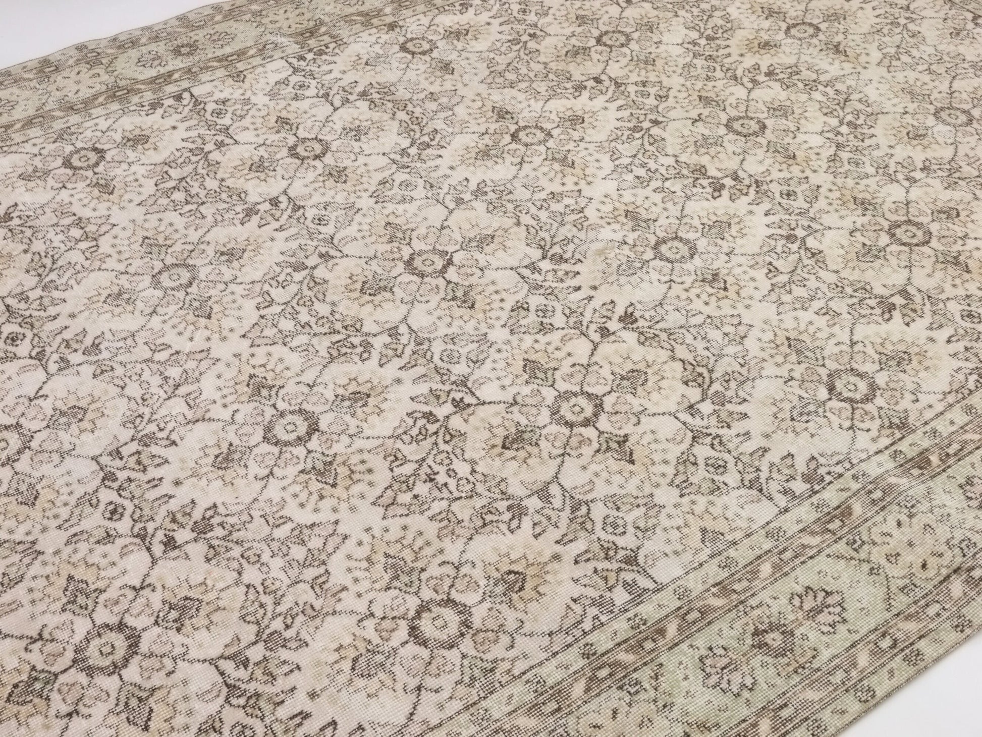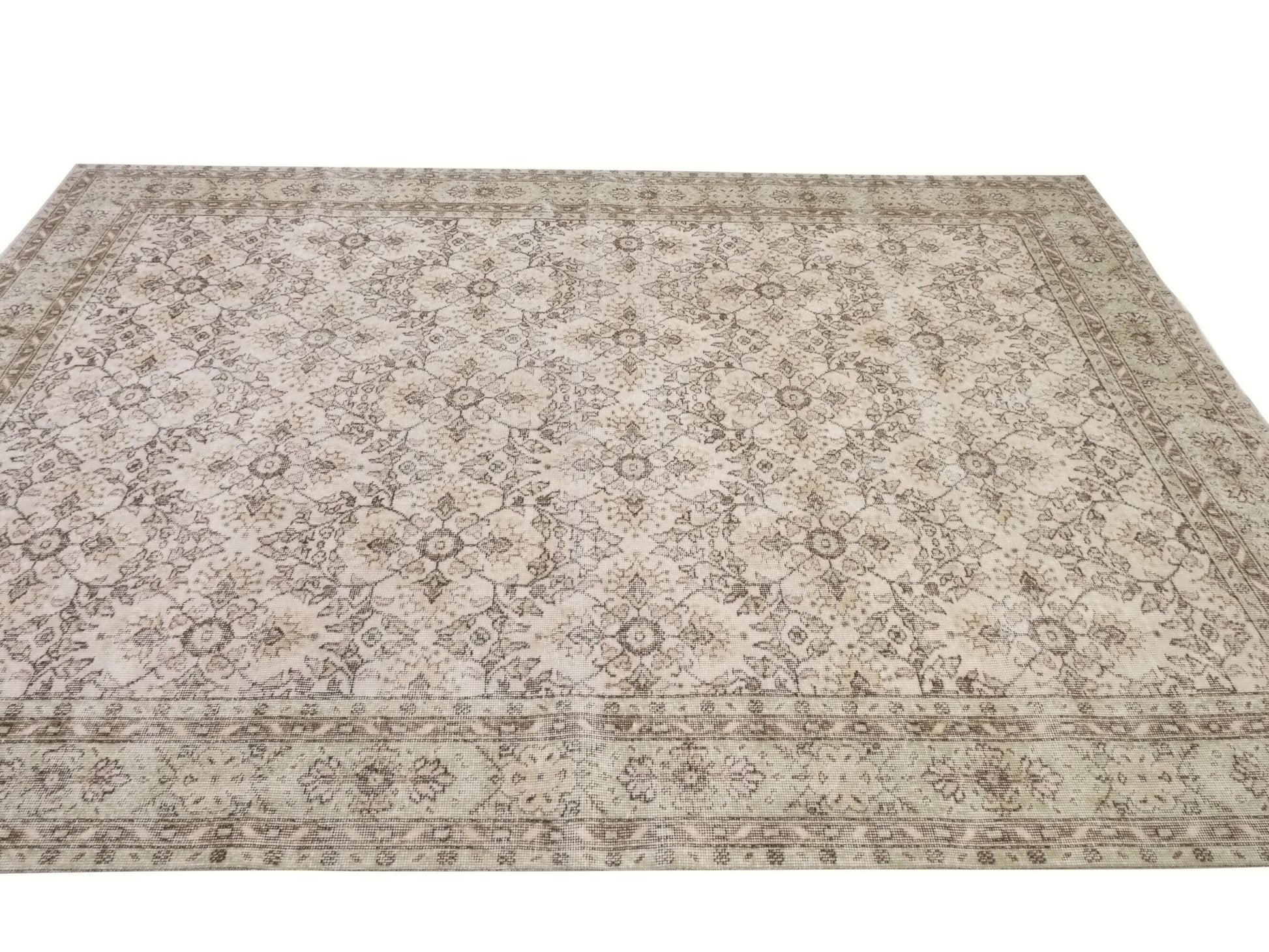 One of a kind Neutral Oushak Rug, Turkish Carpet rug, Vintage Area Rug, Faded rug, Muted rug, Beige Rug 7x10, Large rug, Unique rug, 10317SİZE; 310X215CM - 7'2X10'2 FTBeautiful vintage Turkish Carpet rug is around 60 - 70 years old and in very good condition.This Carpet was hand-woven in the east part region of , Turkey.Care:Dry cleaning only
