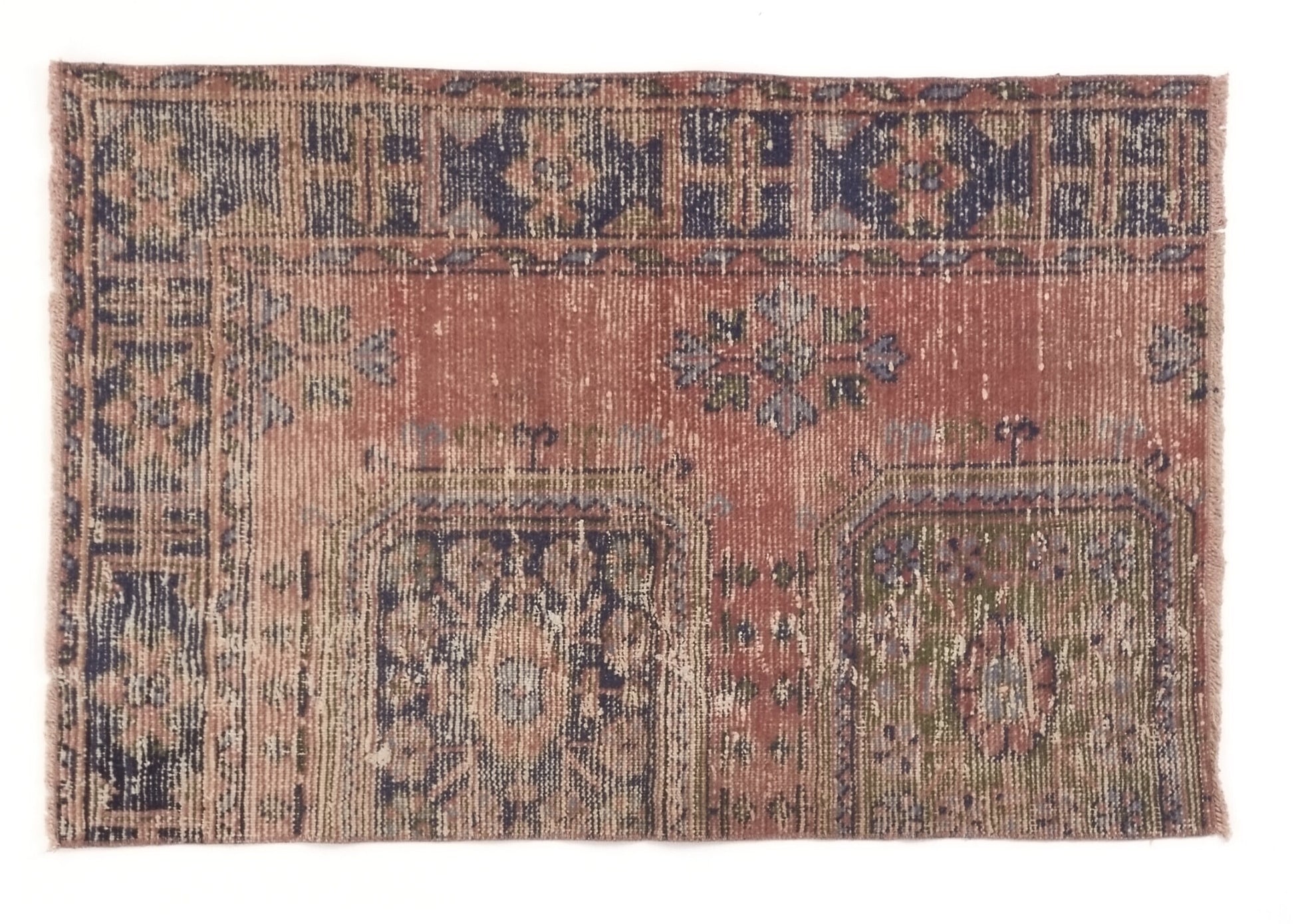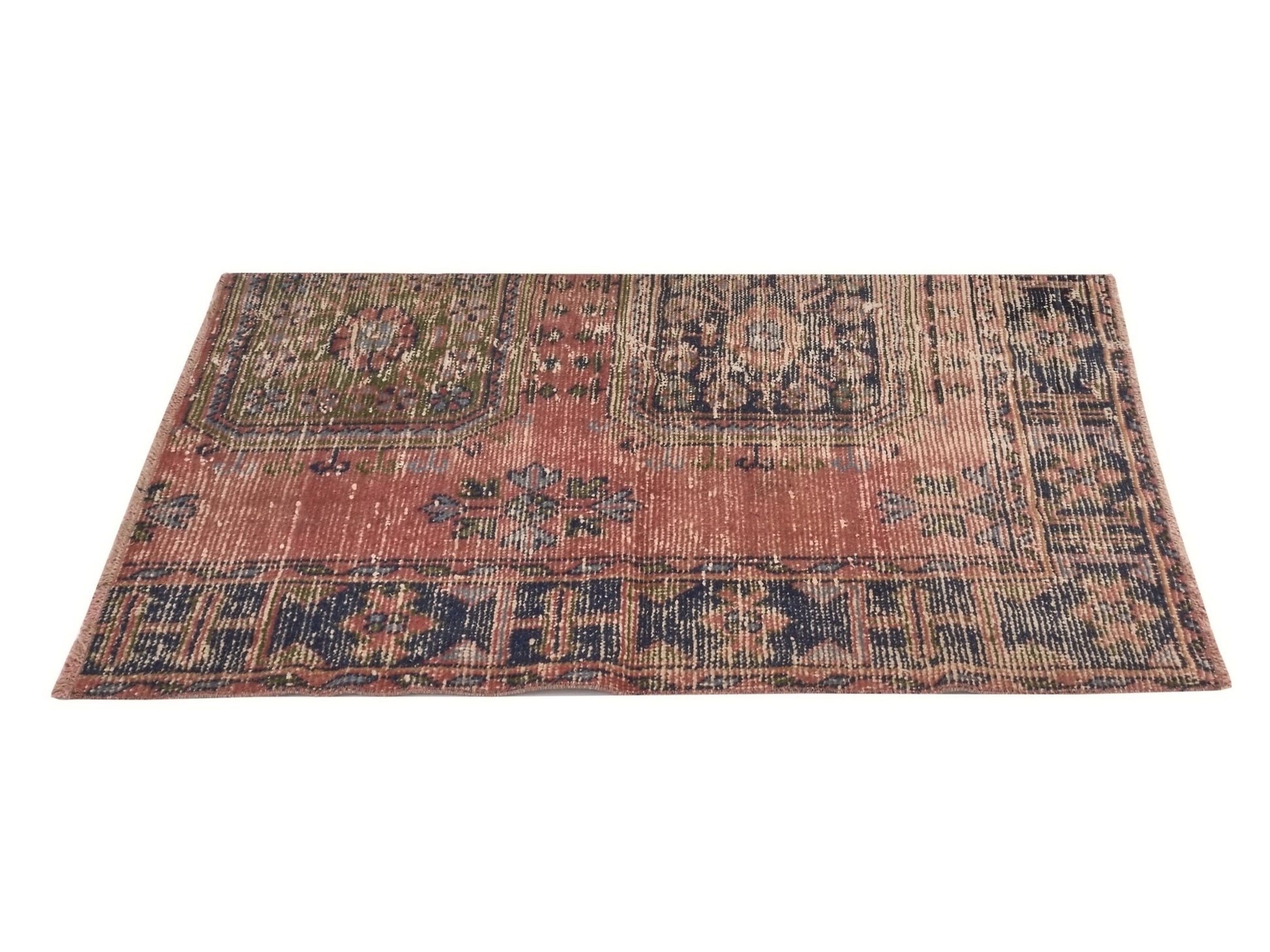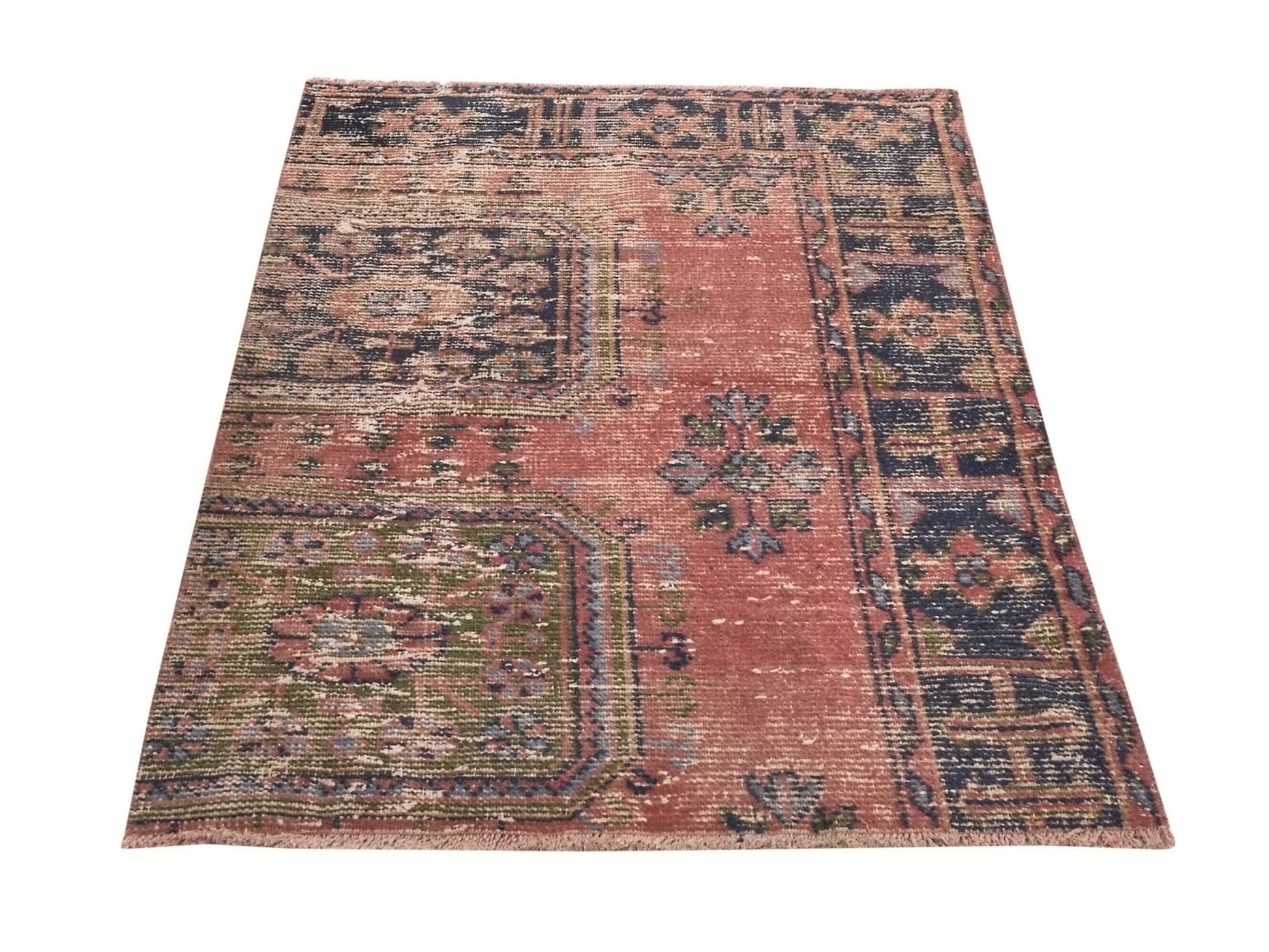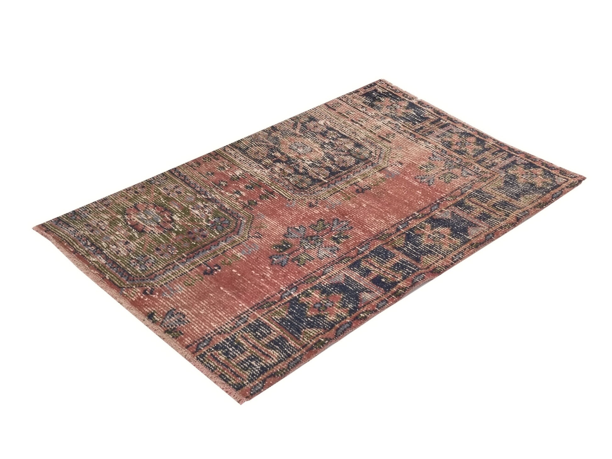Pink Small Bath mat Vintage Turkish Oushak Carpet rug, Vintage Door mat rug, Unique Small Mini Oushak Rug, 3x4 Rug, 8632SİZE; 130X85CM - 2.8X4.3 FTBeautiful vintage Turkish Carpet rug is around 60 - 70 years old and in very good condition.This Carpet was hand-woven in the east part region of , Turkey.Care:Dry cleaning only