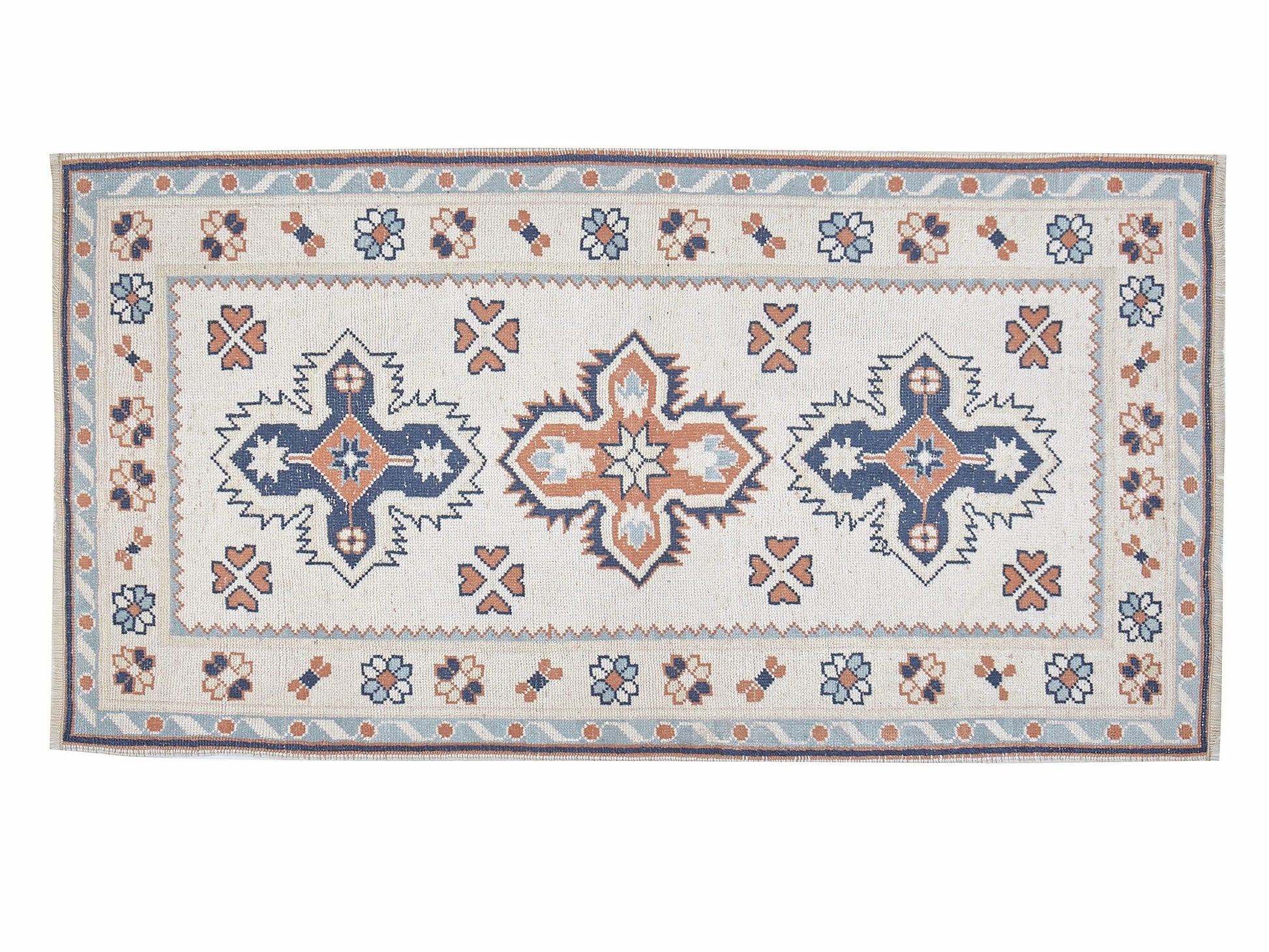 SIZE; 146X86 CM - 2.8X4.8 FT Beautiful vintage Turkish Vintage Kilim Rug is around 60 - 70 years old and in very good condition.Handmade goods comes from anatolian villages of TURKEYCare:Dry cleaning only Before ship the Kilim ; we flatten borders, stretch /ironing, rework, border correction and re cleaning by my shop members.When you order we are shipping rugs in 1-3 business days with FEDEX and UPSİf the kilim does not come as promised we accept %100 refundPlease Contact us for your wholesales orderIf You have any questions,Please Feel free to ask any questions .We'll be Happy to get back you asap we can