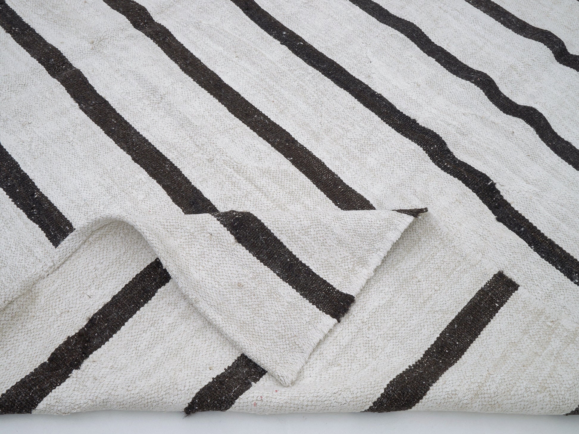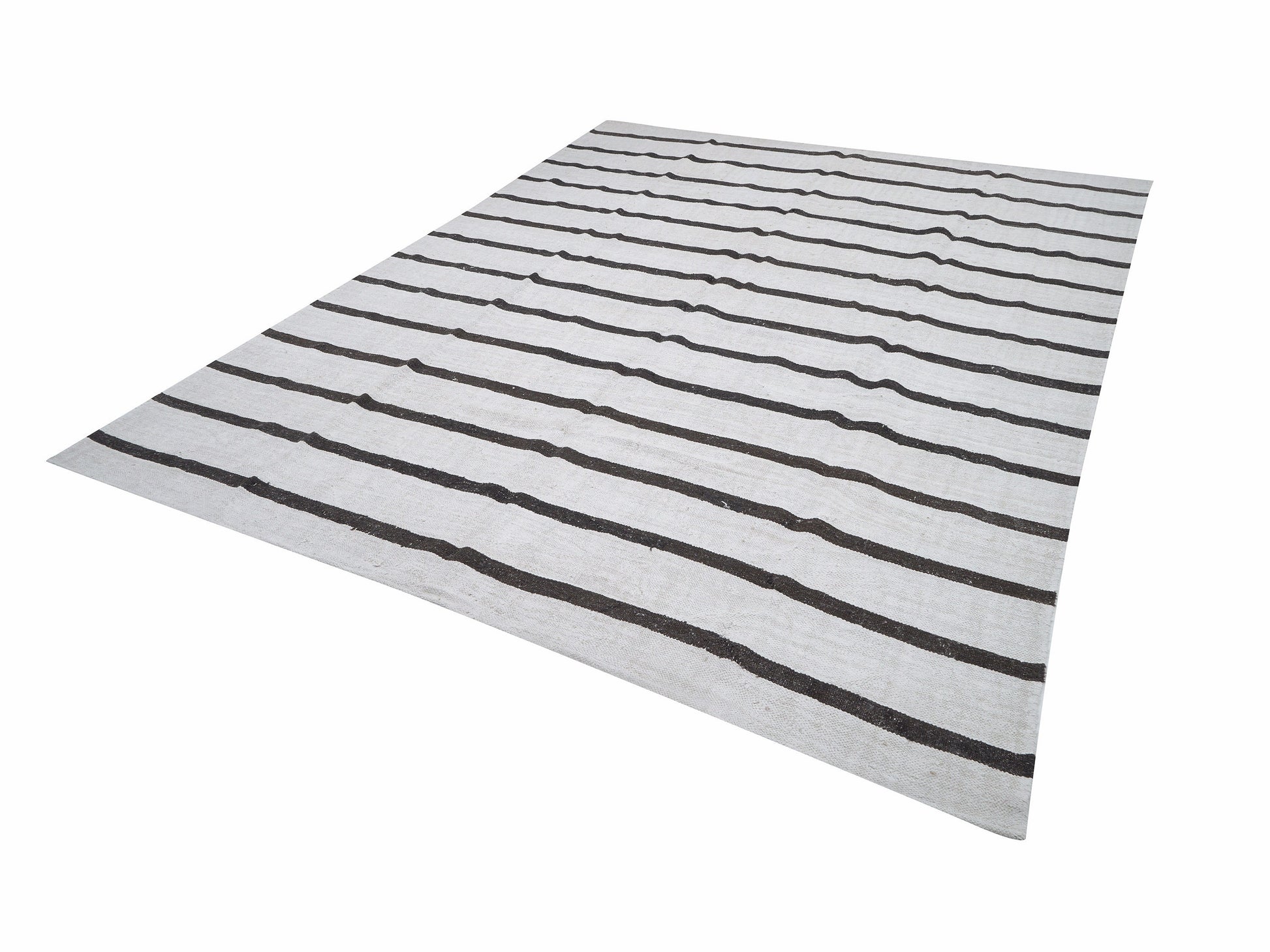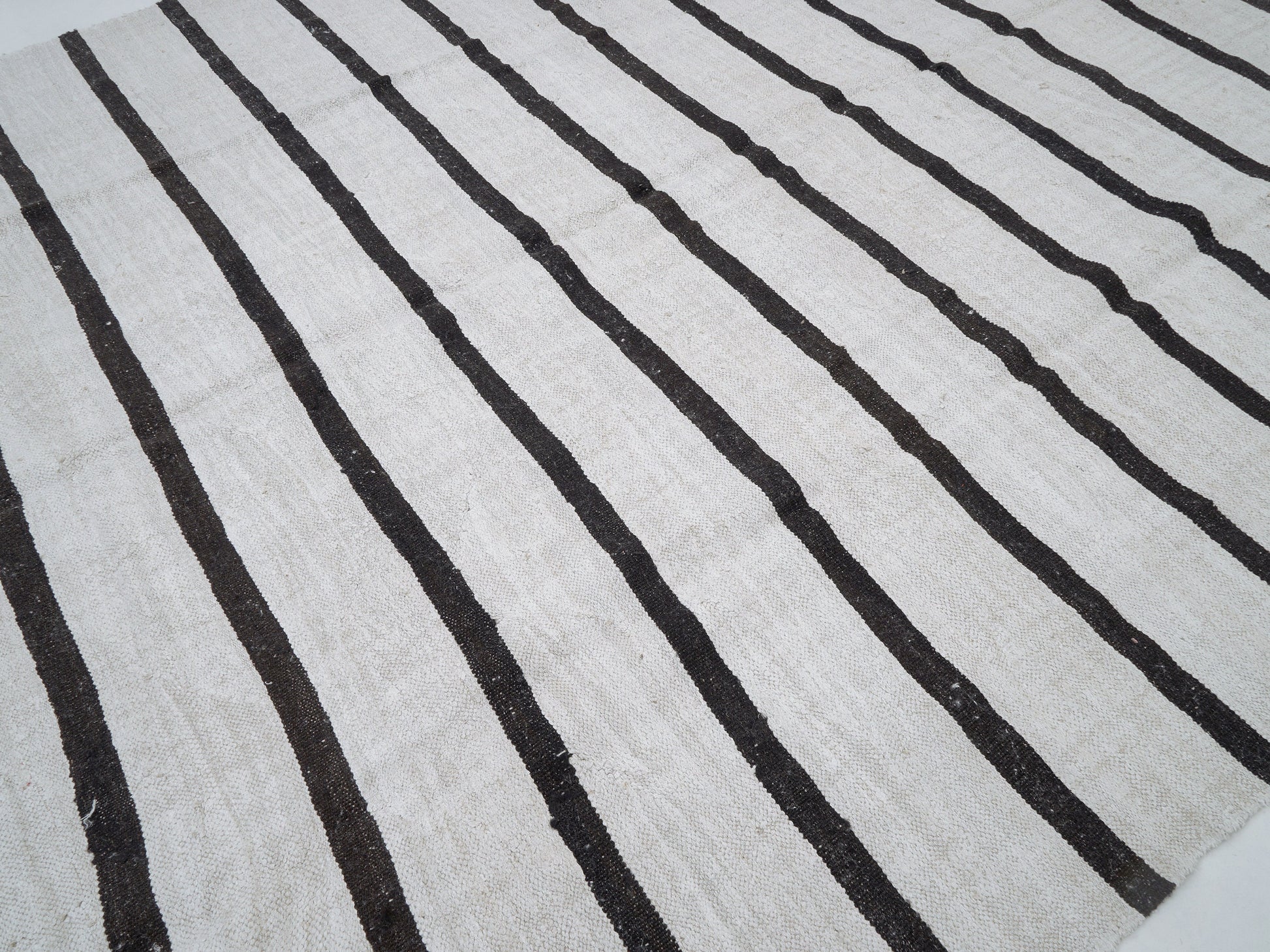 Turkish Vintage Kilim Rug, Handmade Black Striped Kilim Rug, Area Kilim Rug, Oversize Rug, Large Rug, White Hemp Rug, Kilim Rug 9x11, 12274